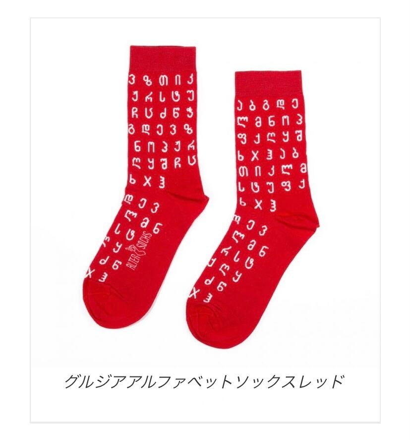 赤の柄にジョージア文字(グルジア語)が書いてあります。